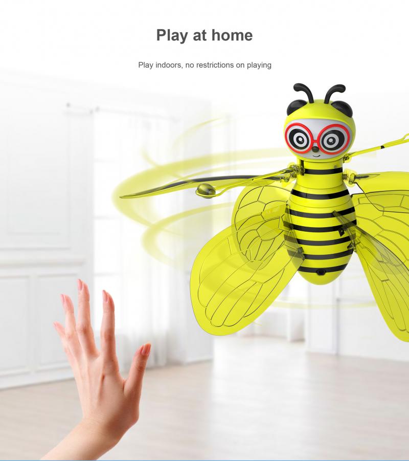Mini-jouet volant en forme d'abeille - Drone hélicoptère à induction infrarouge télécommandé avec détection de gestes brillants