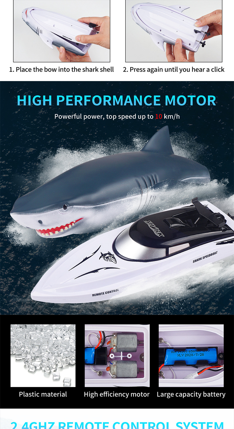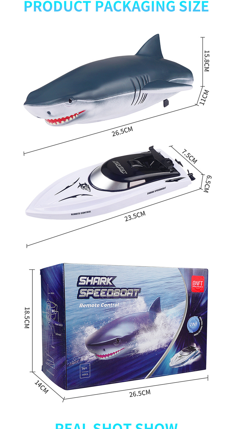 Nouveau bateau télécommandé électrique Shark, étanche, modèle de simulation de piscine, jouet 2 en 1, bateau télécommandé à grande vitesse