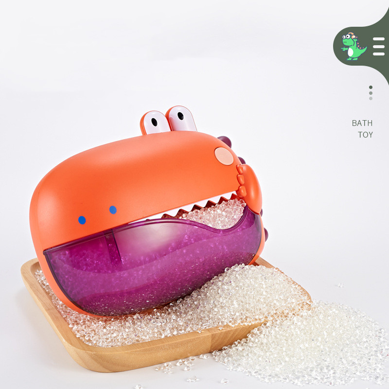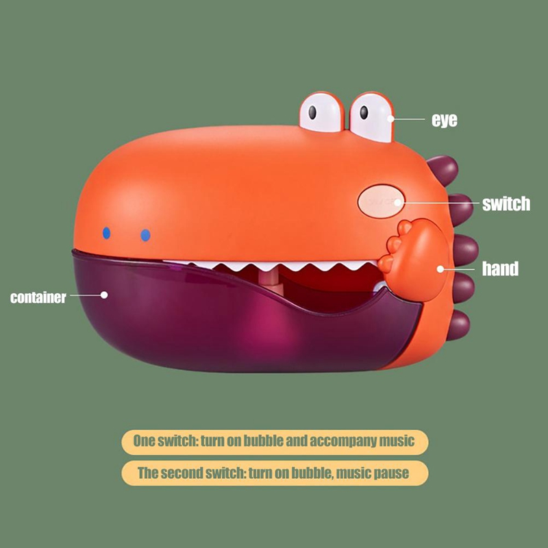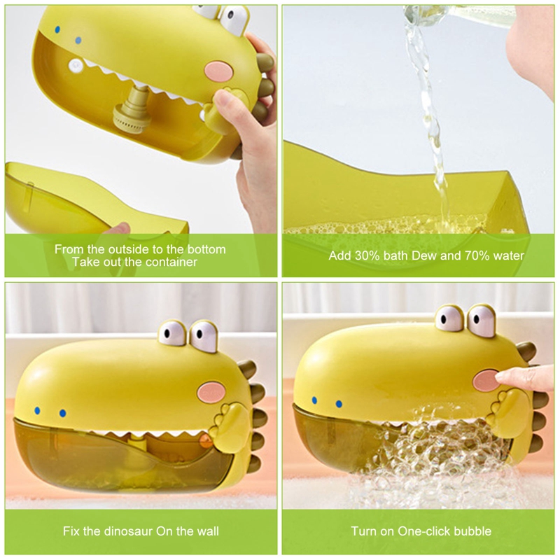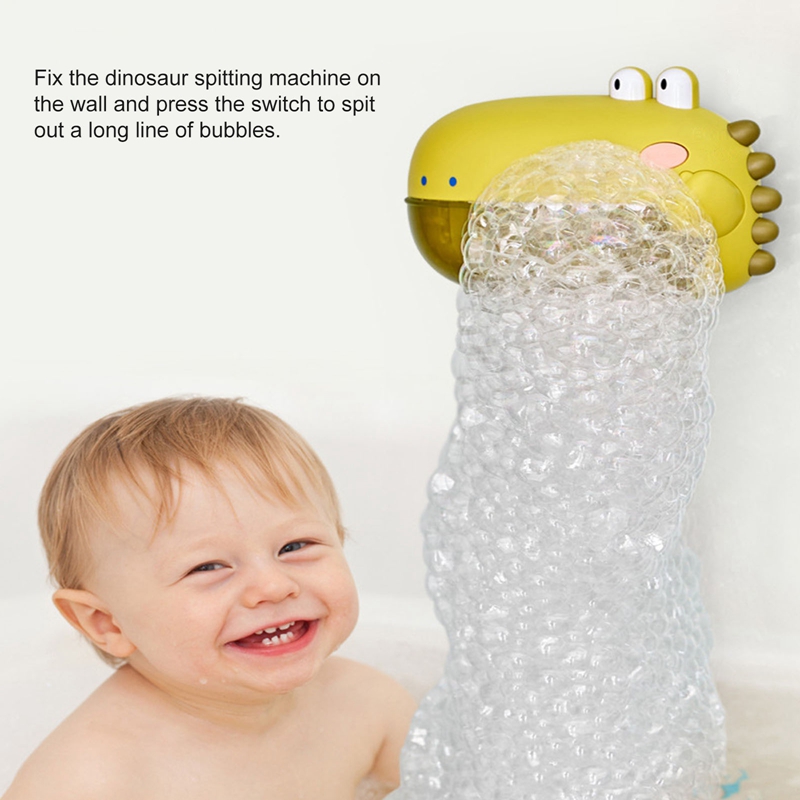 2. How to Use: Fix the dinosaur machine on the wall and press the switch to spit out a long line of bubbles. Let children fall in love with bathing, it is a game in water.