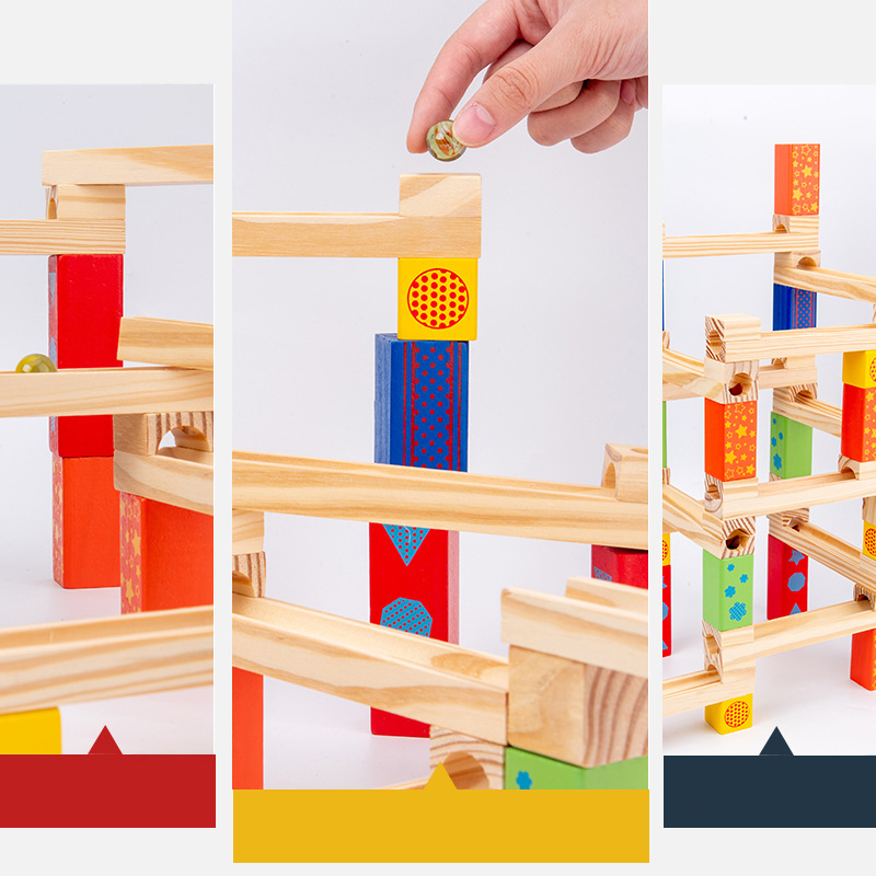 Children's Educational Parent-child Ball Track Slide Blocks Stacking High Marbles To Build Wooden Toys