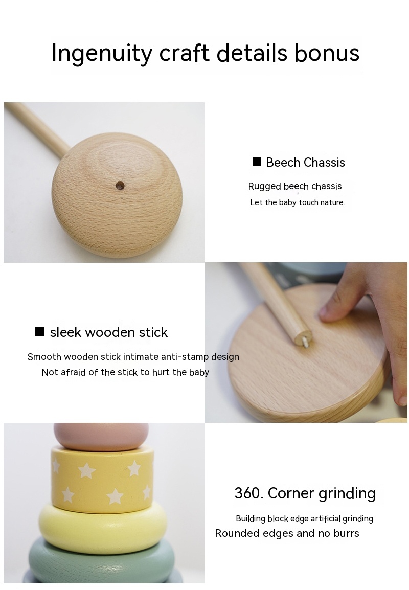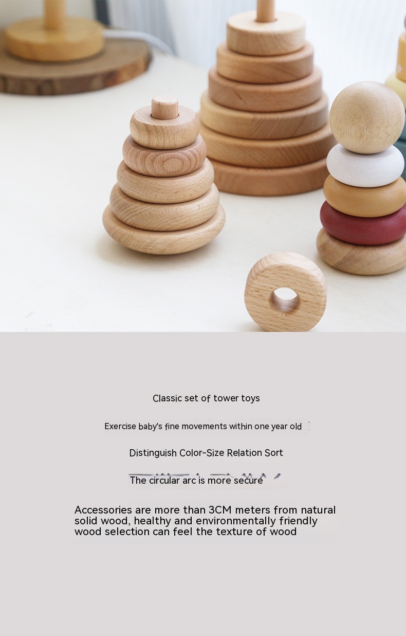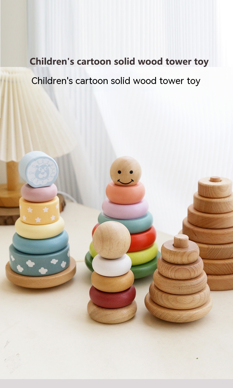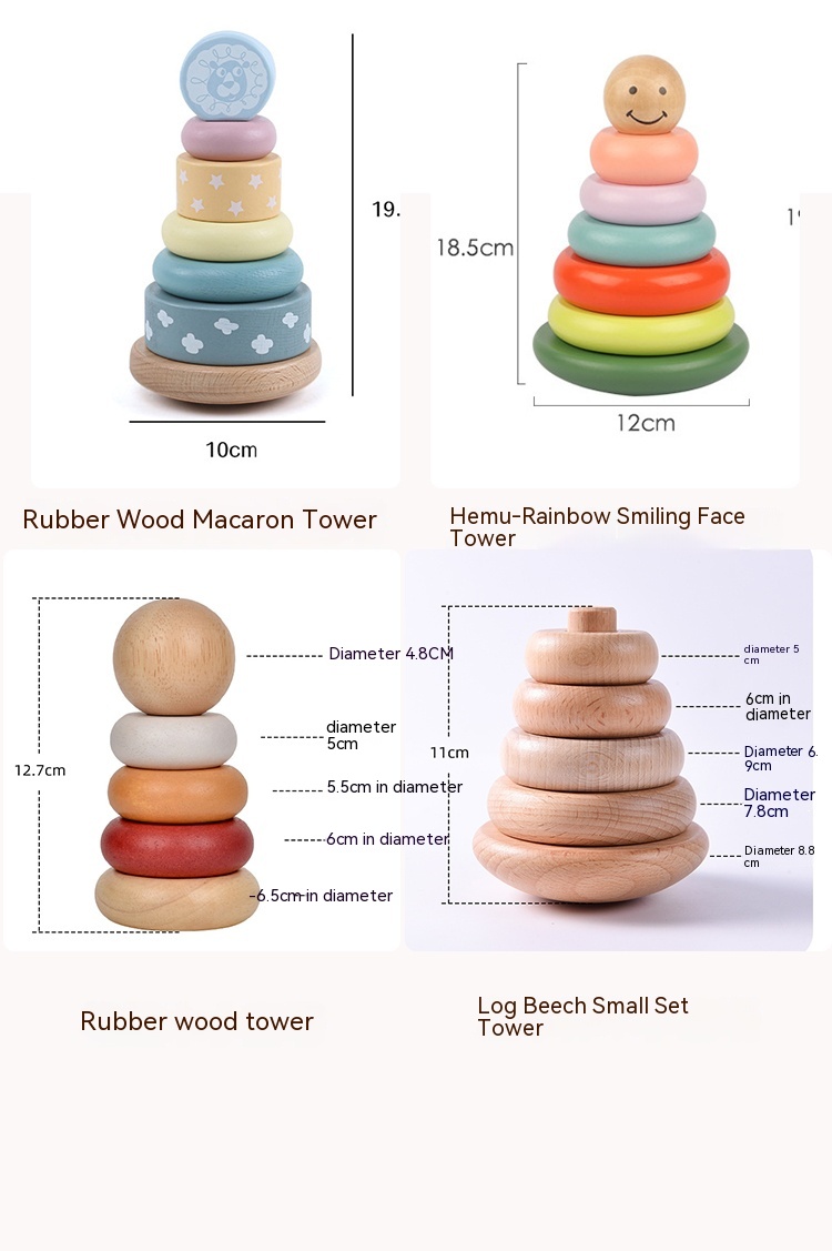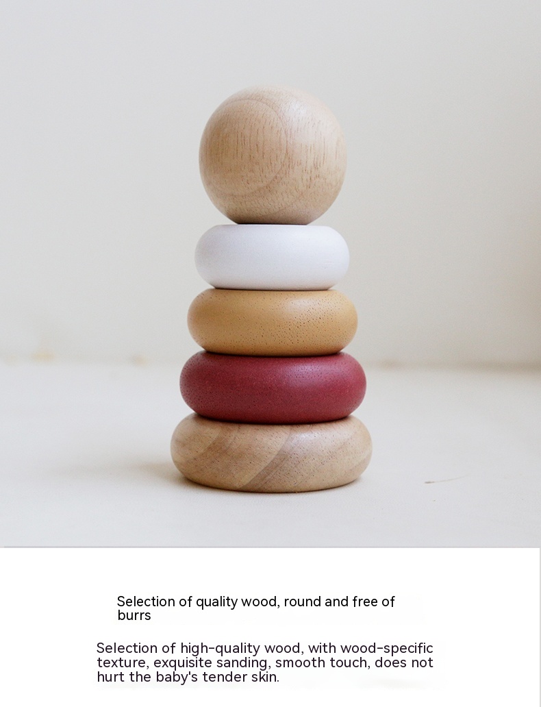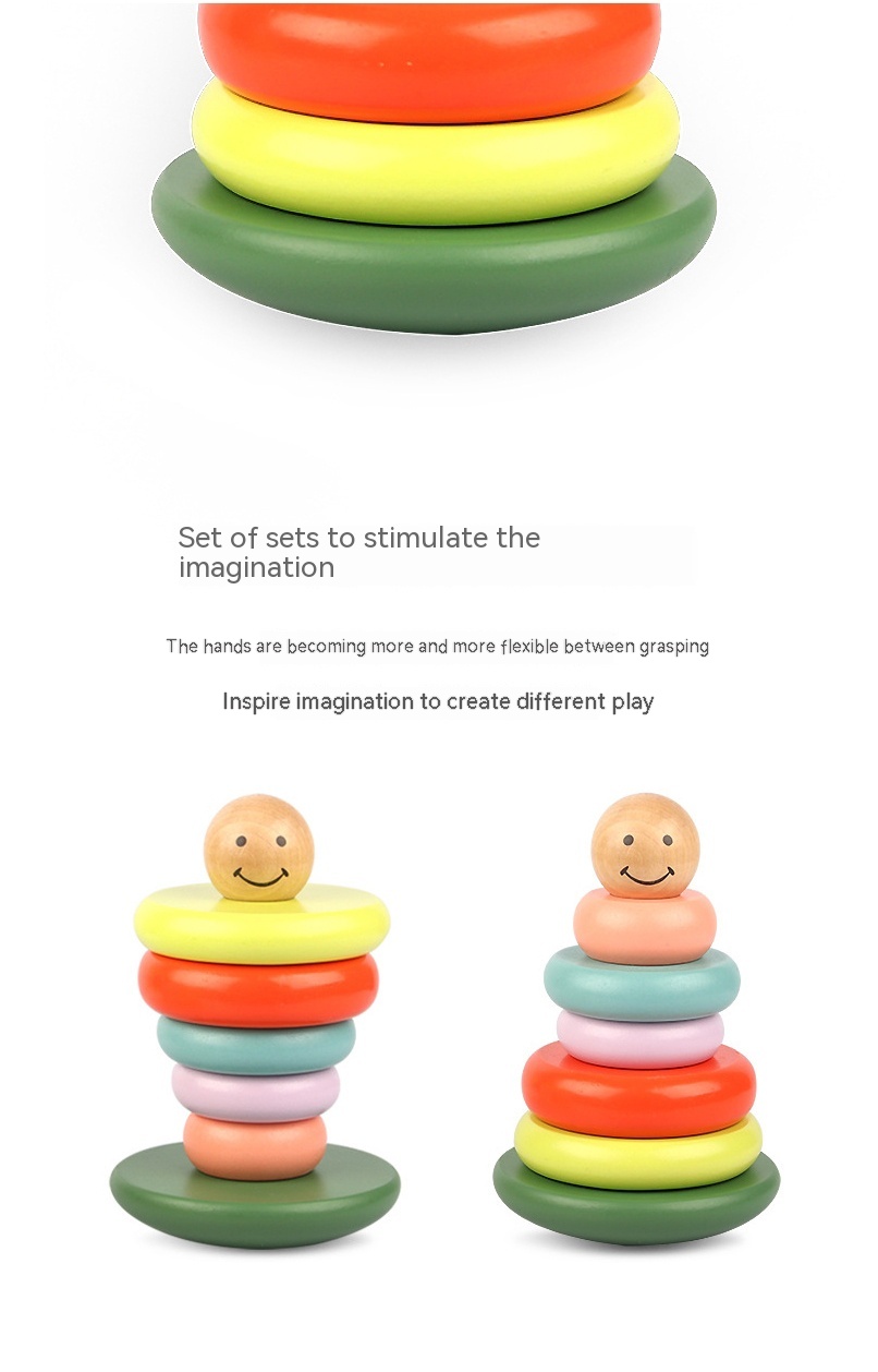 Children's Puzzle Wooden Folding Music Set Column, Rainbow Tower Ring, Large Early Childhood Education Toy Wood