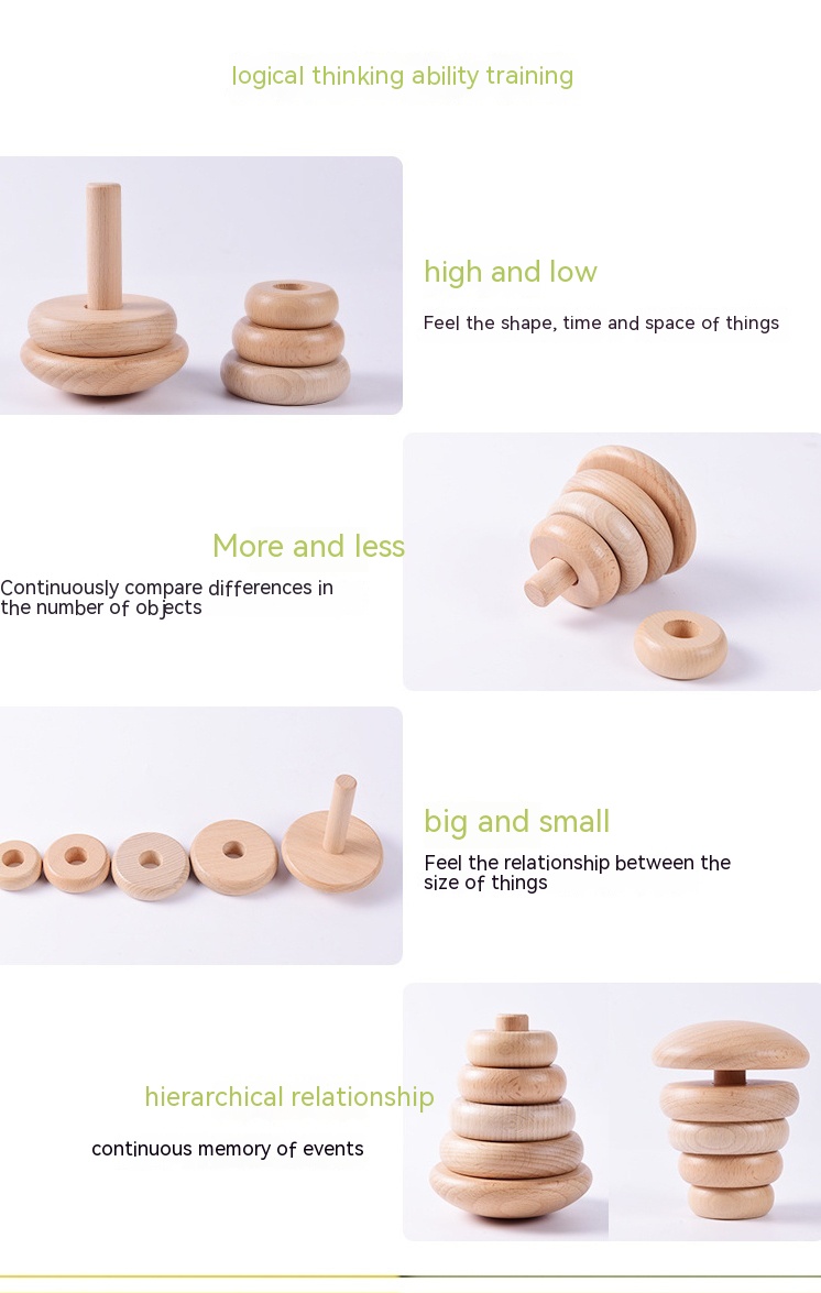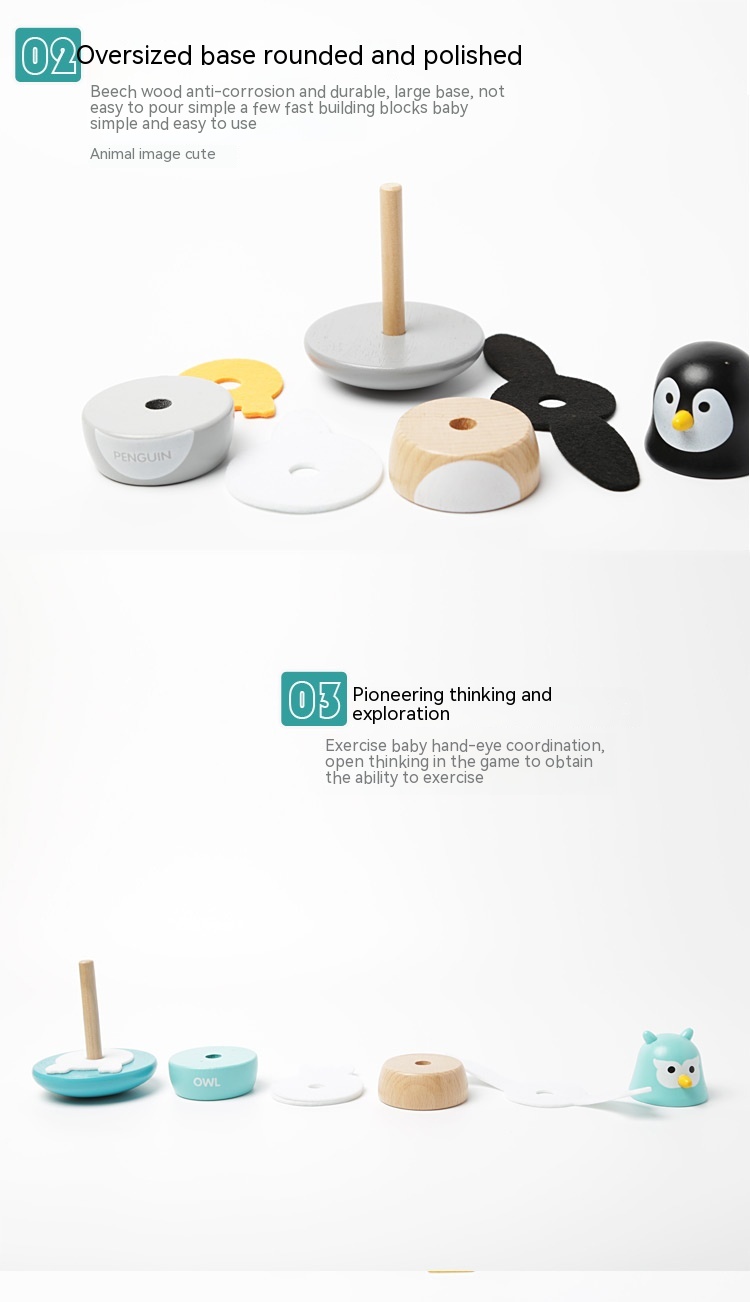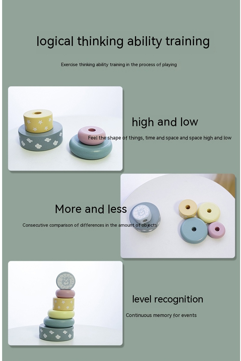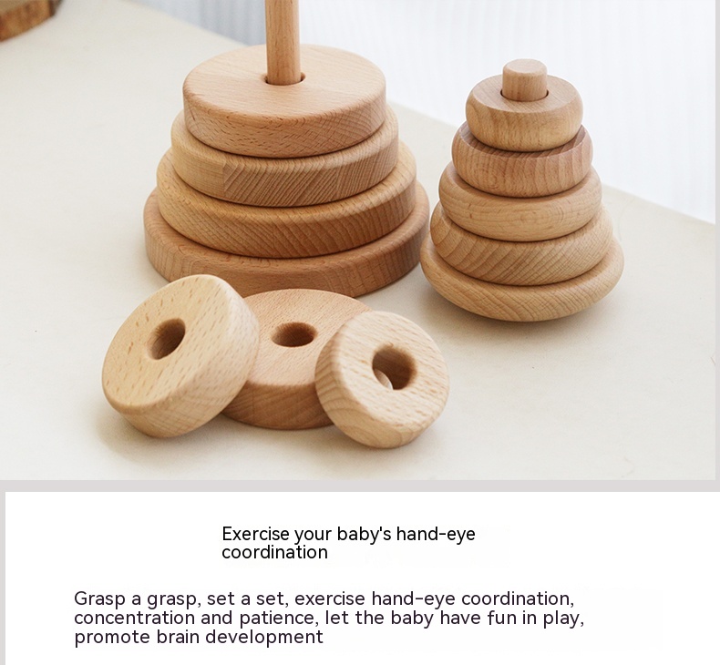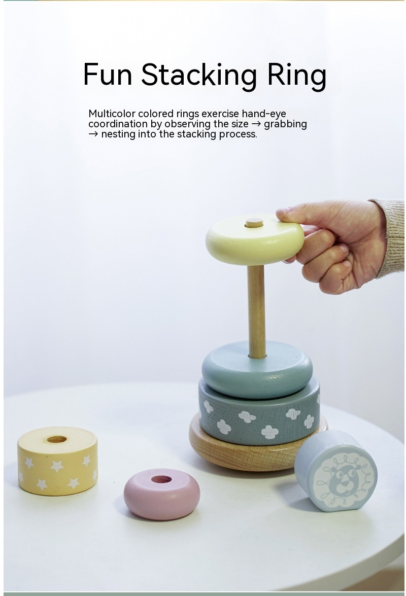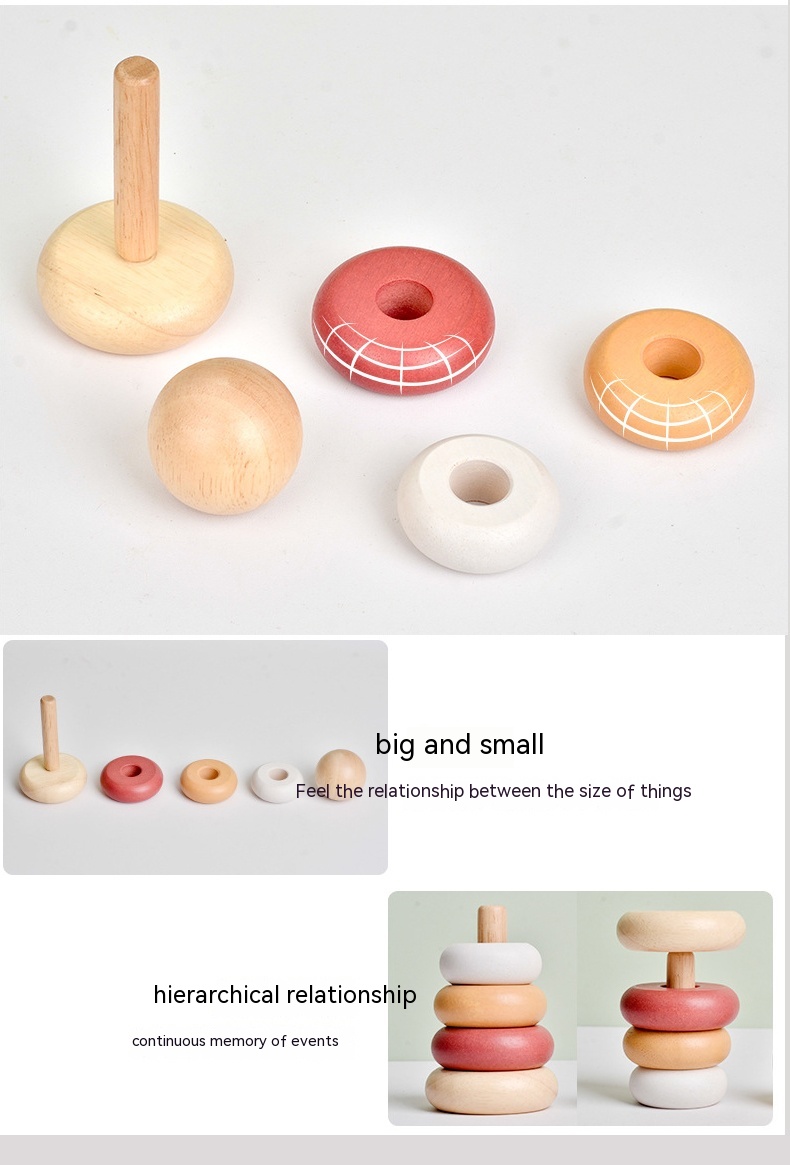 Children's Puzzle Wooden Folding Music Set Column, Rainbow Tower Ring, Large Early Childhood Education Toy Wood