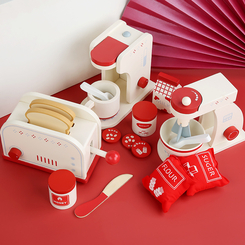 Color: red and white bread maker, red and white coffee maker, red and white blender