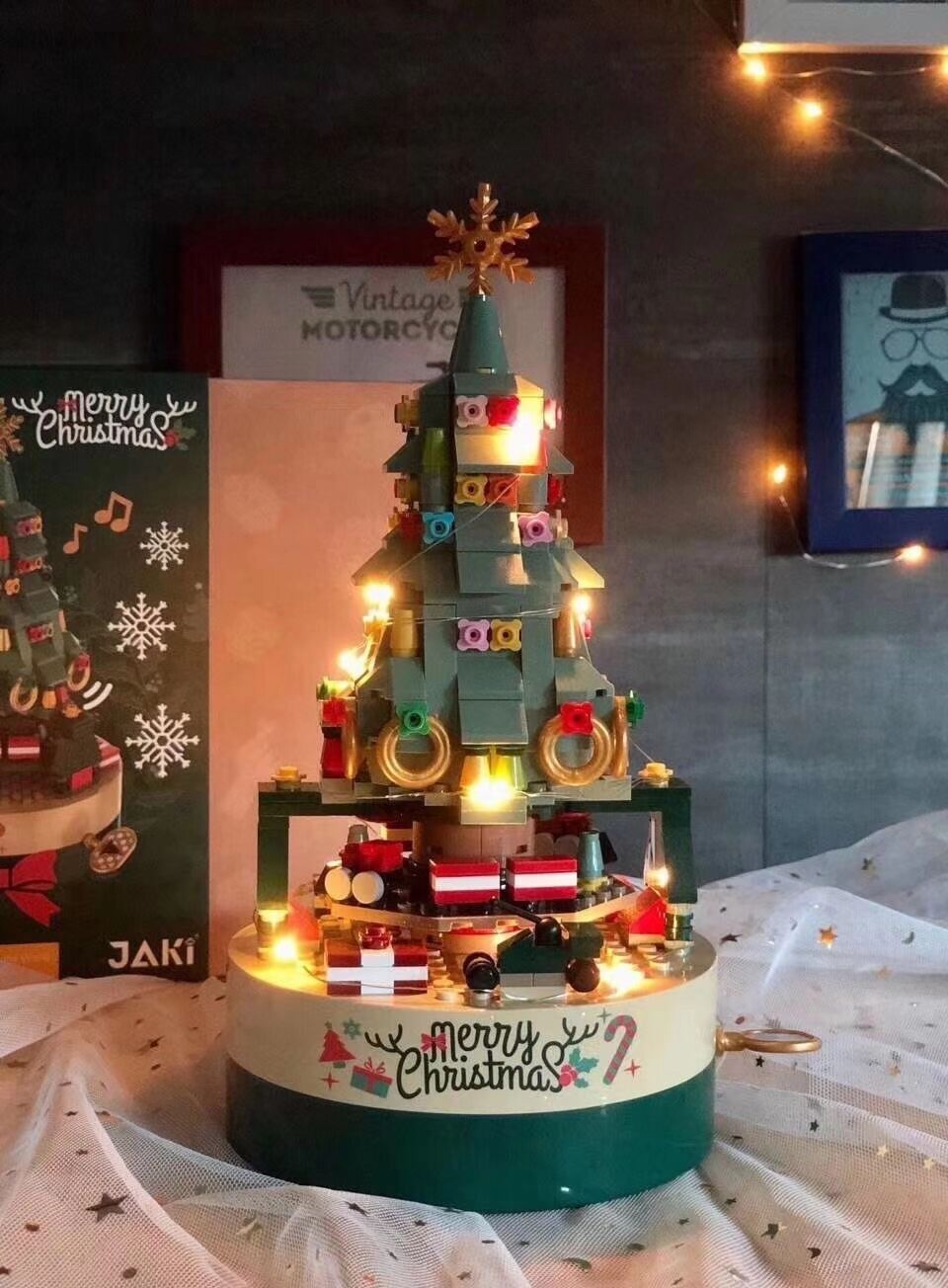 DIY Building Blocks Music Box Christmas Tree Model Desktop Decoration Ornaments Gift Box For Woman Kids Present New Year Gifts