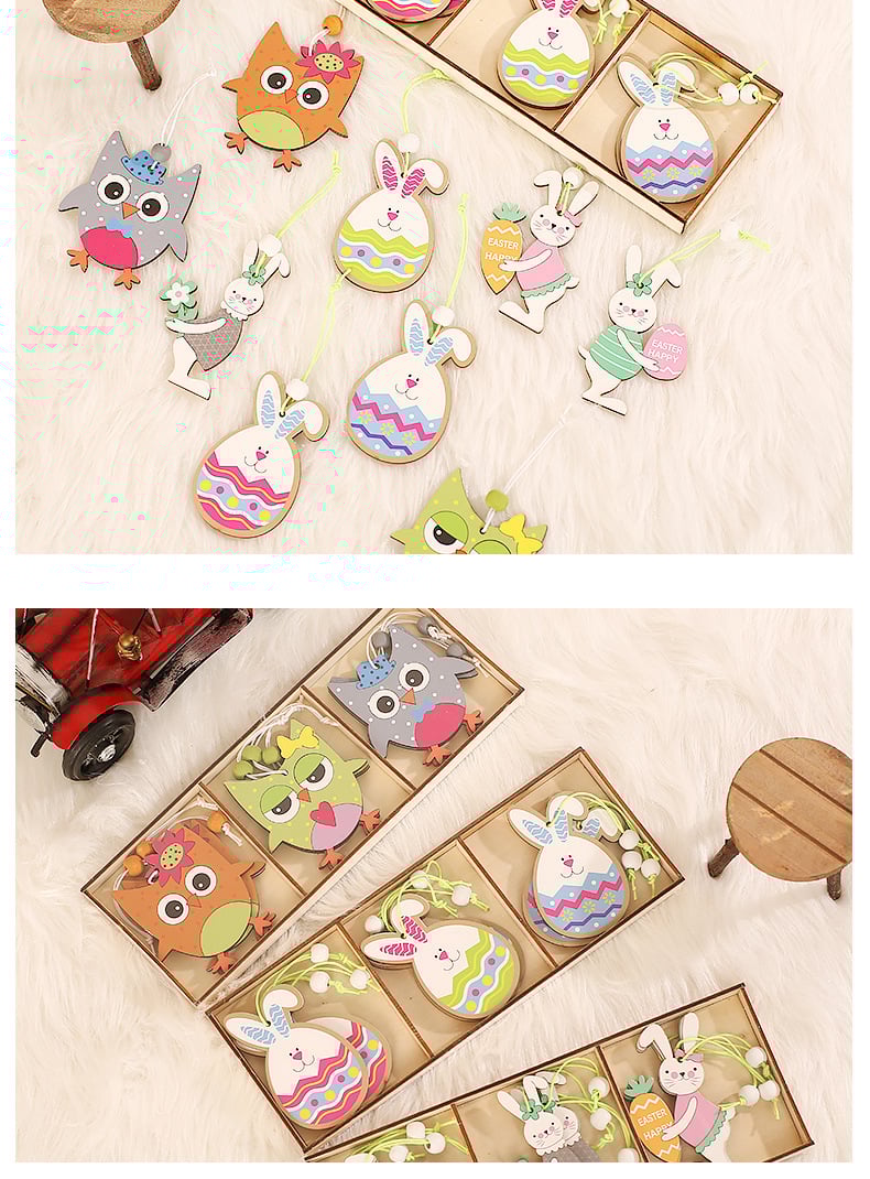 Easter Bunny Egg Animal Painting Pendant Wooden Crafts