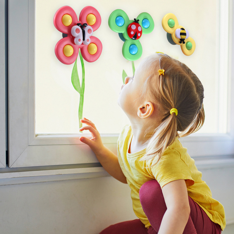 Kids Gyro Insect Sucker Spinner Rattle Bathroom Bath Toys Table Dinner Appease Toys for Baby Toddlers