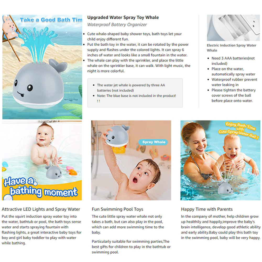 New Baby Bathroom Bath Electric Induction Whale Spray Small Toy