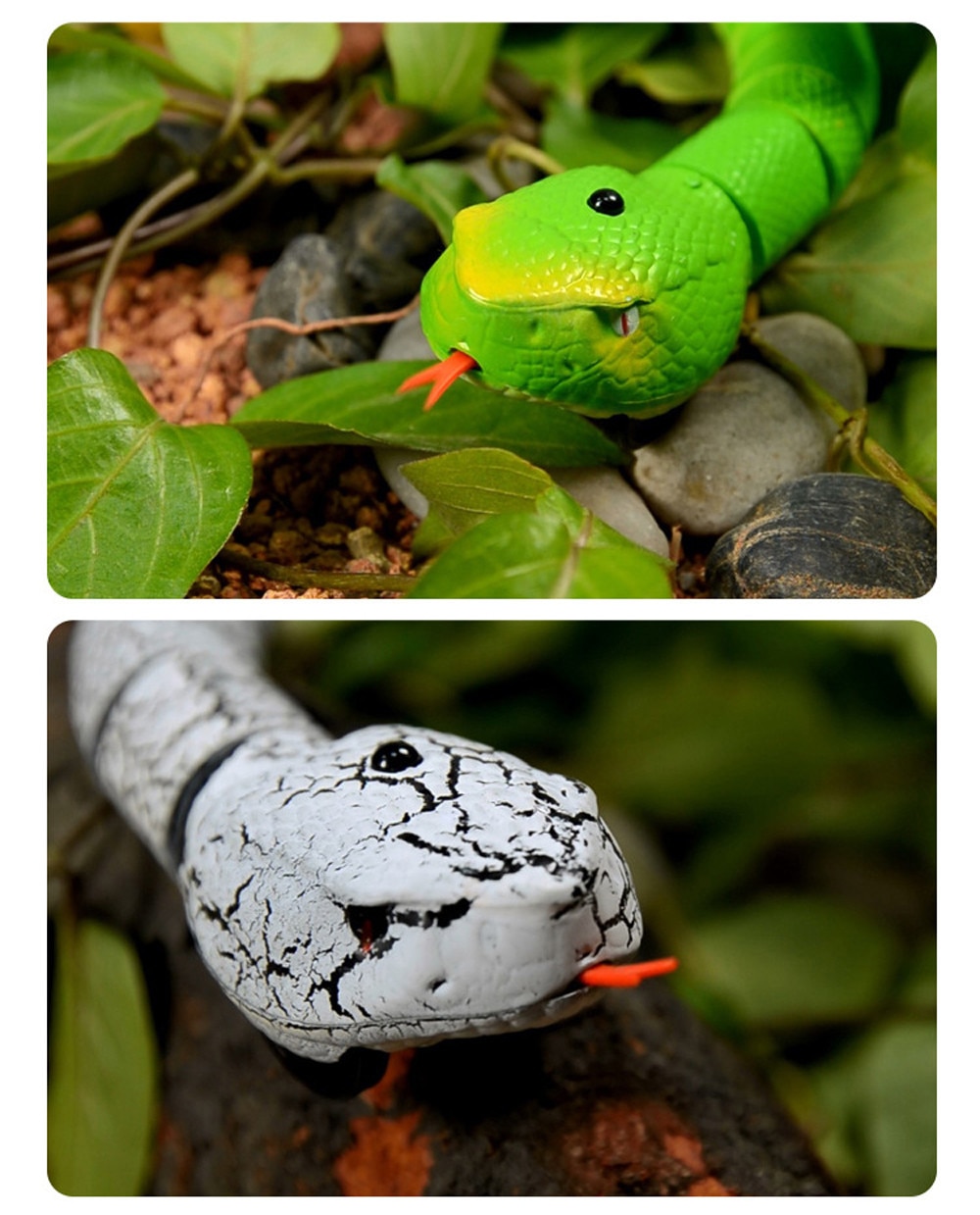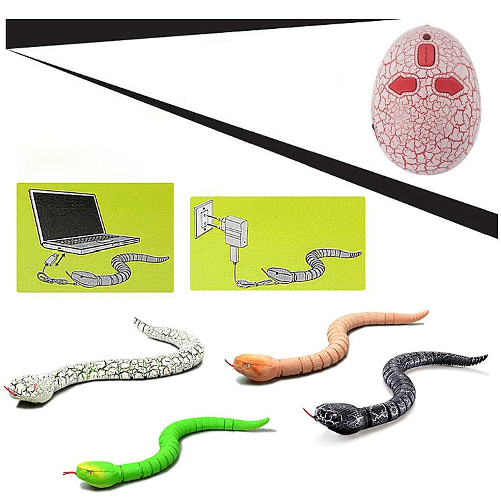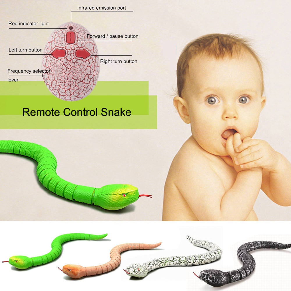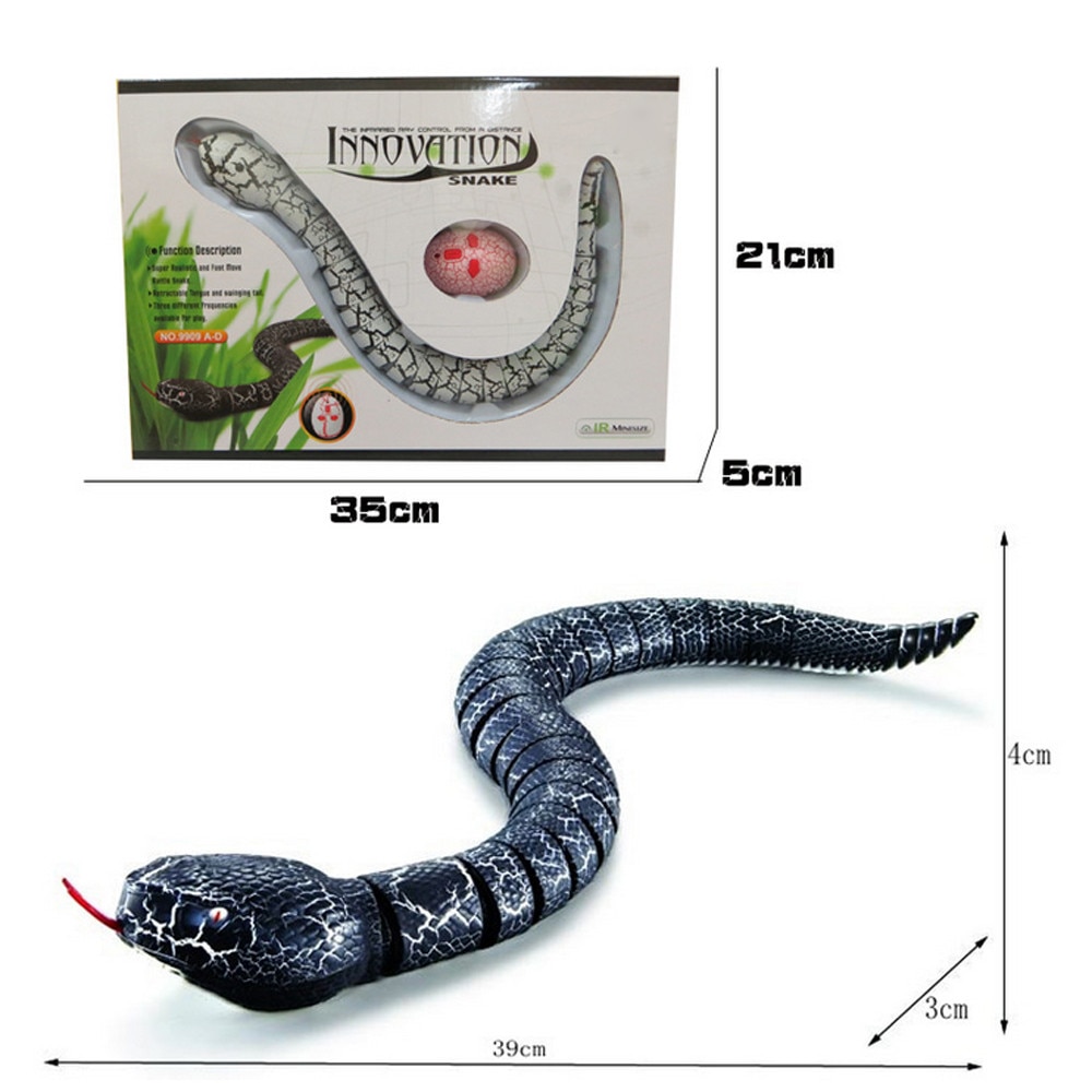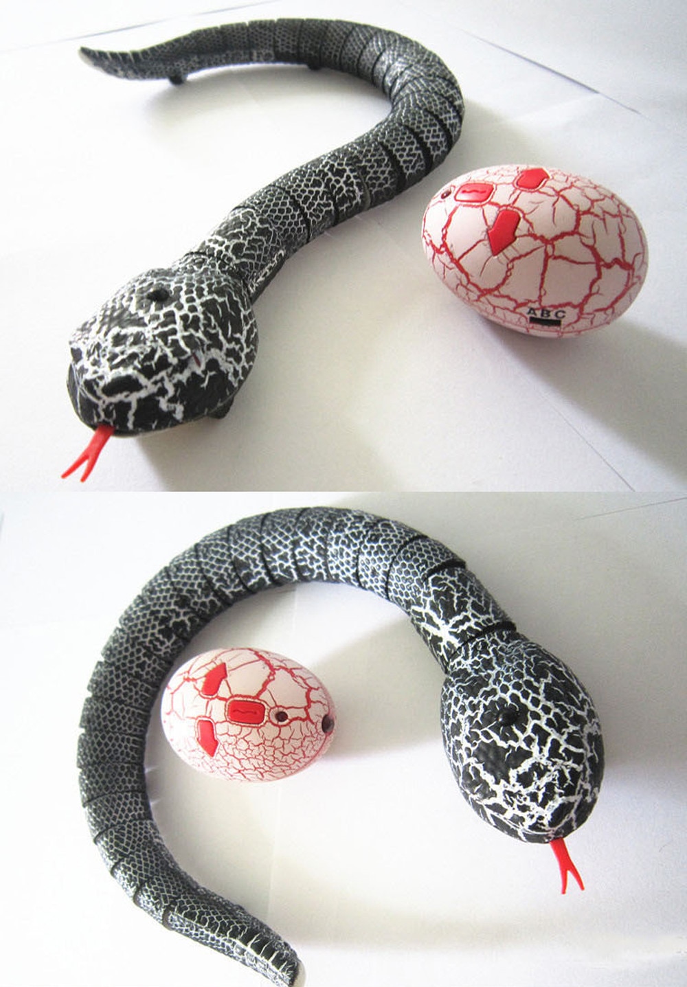 Features: Super realistic and naturally moving snake Retractable tongue and swinging tail 3 different frequencies and speeds available Segmented body for realistic slithering action Use the remote control egg to turn it left or right.