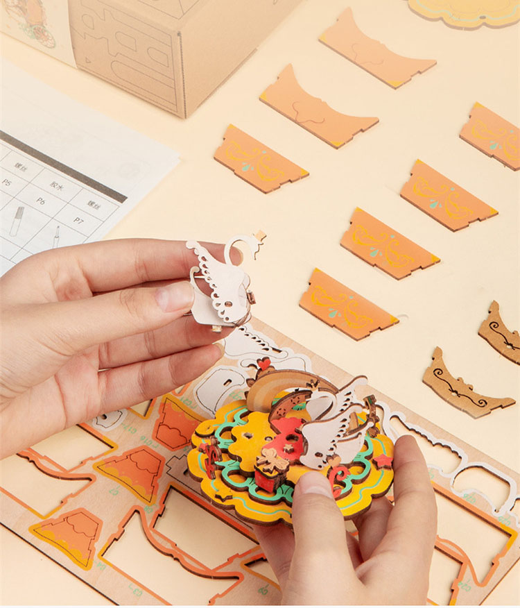 Robotime Holiday Gift 7 Kinds DIY 3D Puzzle Game Assembly Moveable Music Box Toy For Children Adult