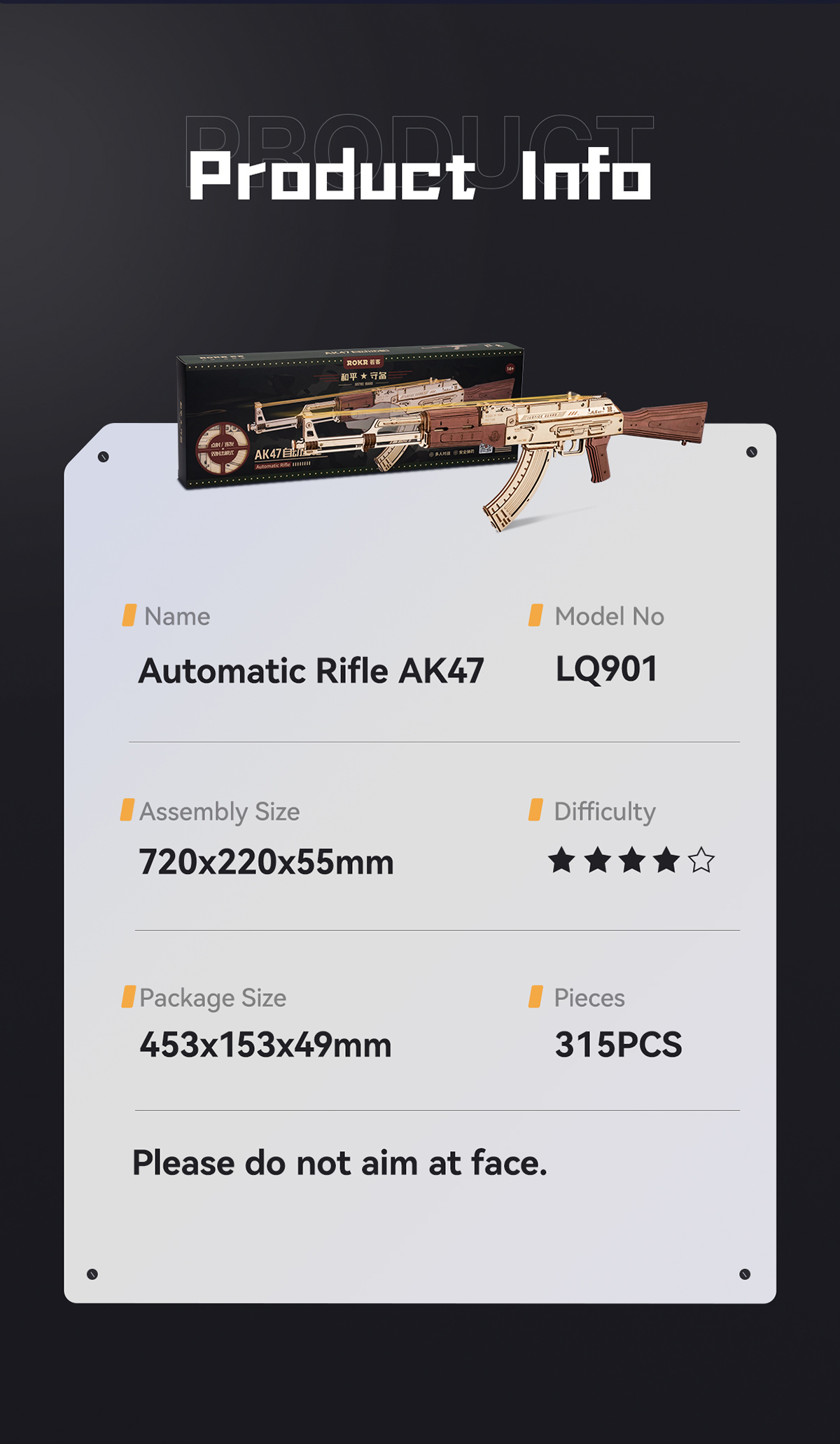 1. This product is a perfect replica of the AK-47 design, using the original wood color and dark brown wood grain gun body.