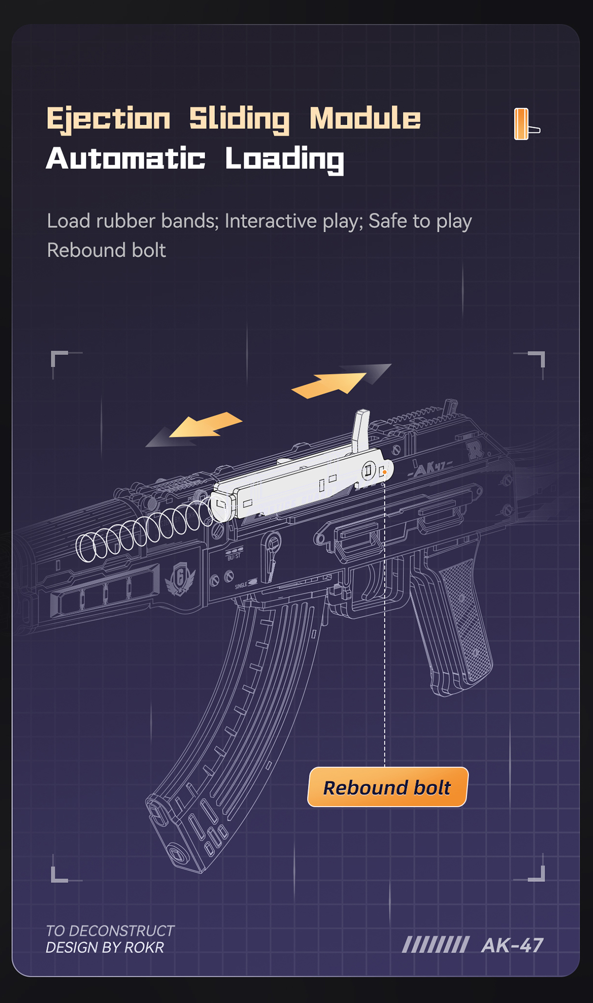 3. Detachable magazine, mechanical design. The product is made of mortise and tenon construction, tightly and fully physical splicing. Splicing fun as well as gun fun both.