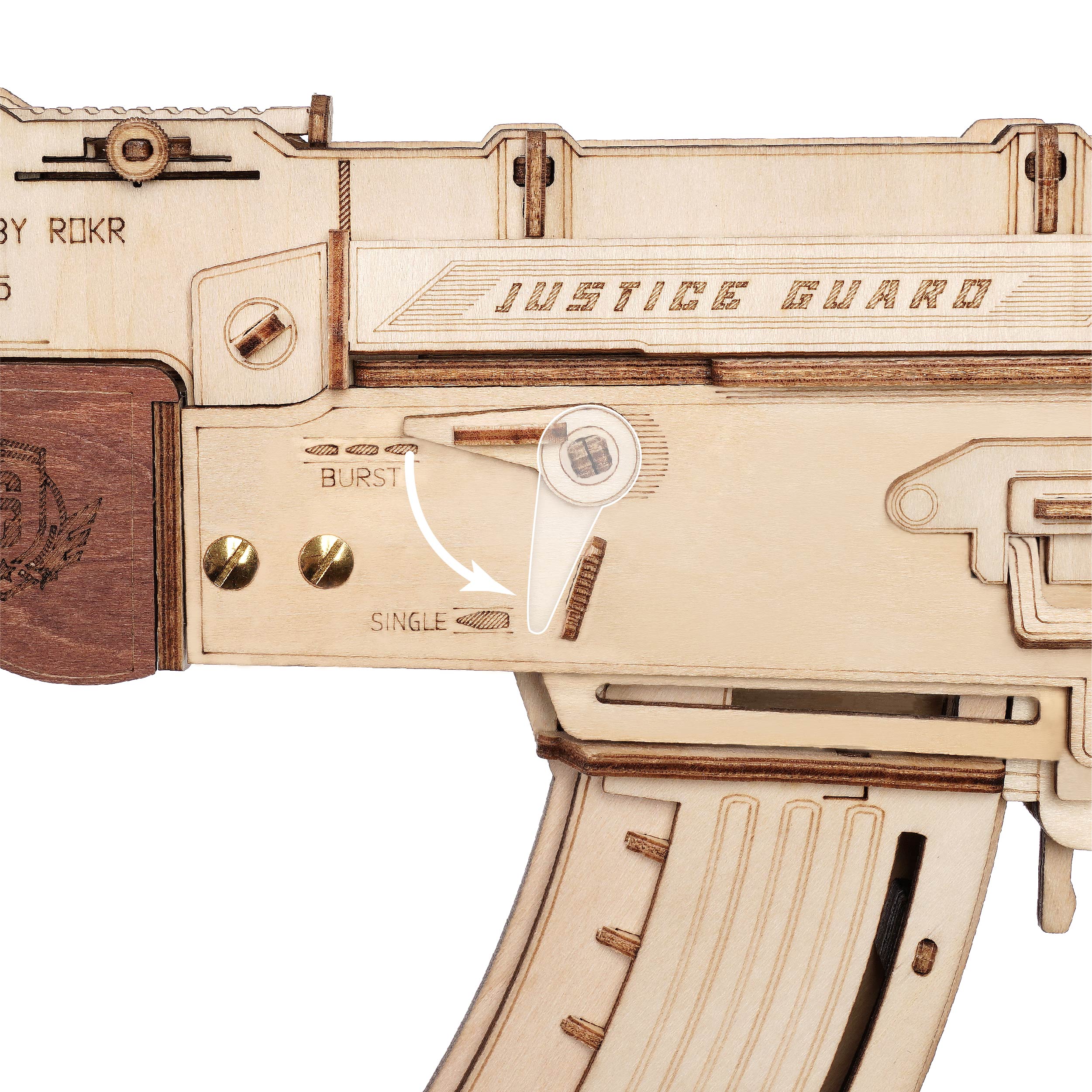 Robotime Rokr Automatic Rifle AK-47 3D Wooden Assembly Gun Double Firing Modes Funny DIY Toys For Kids Adults Justice Guar LQ901