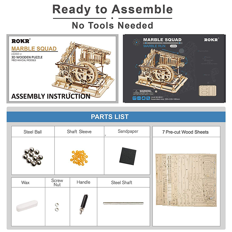 Robotime ROKR Blocks Marble Race Run Maze Balls Track DIY 3D Wooden Puzzle Coaster Model Building Kits Toys for Drop Shipping