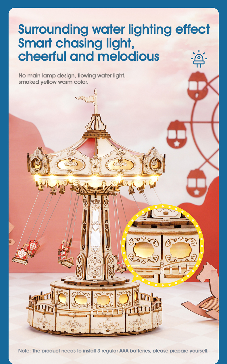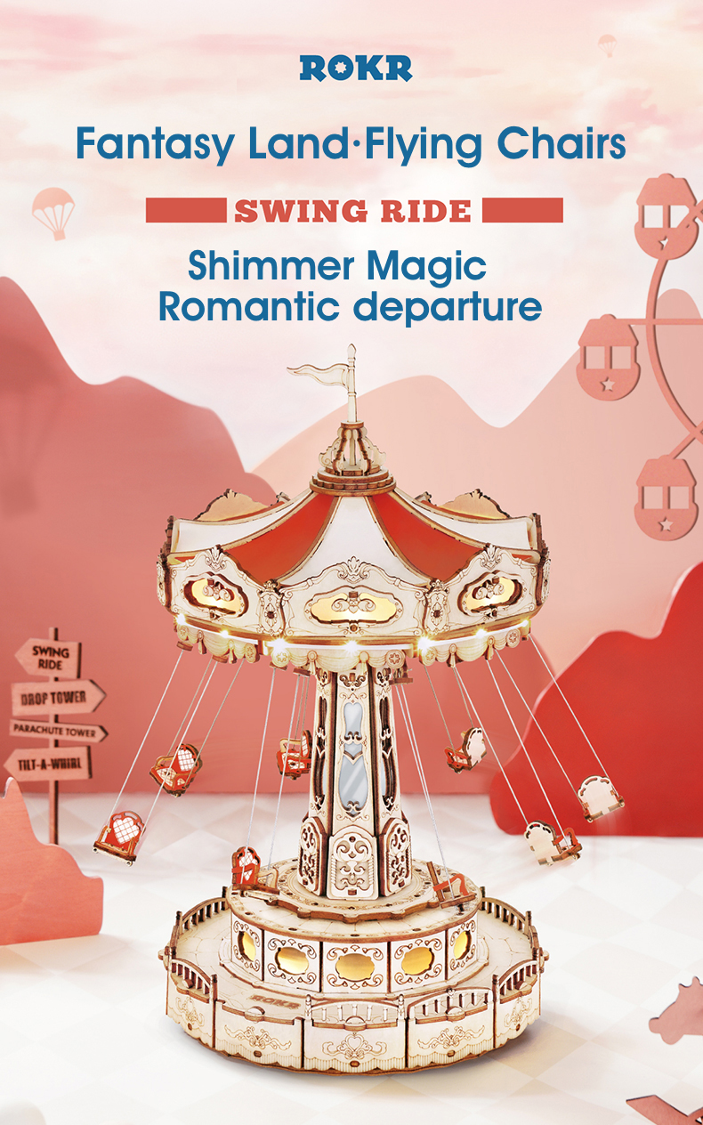 Robotime-ROKR Swing Ride DIY music box is creative and funny to play.