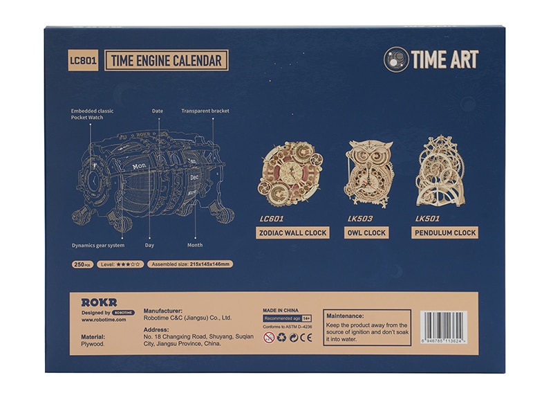 Robotime ROKR Time Engine Calendar 3d Wooden Puzzle Model Toys for Children Kids LC801