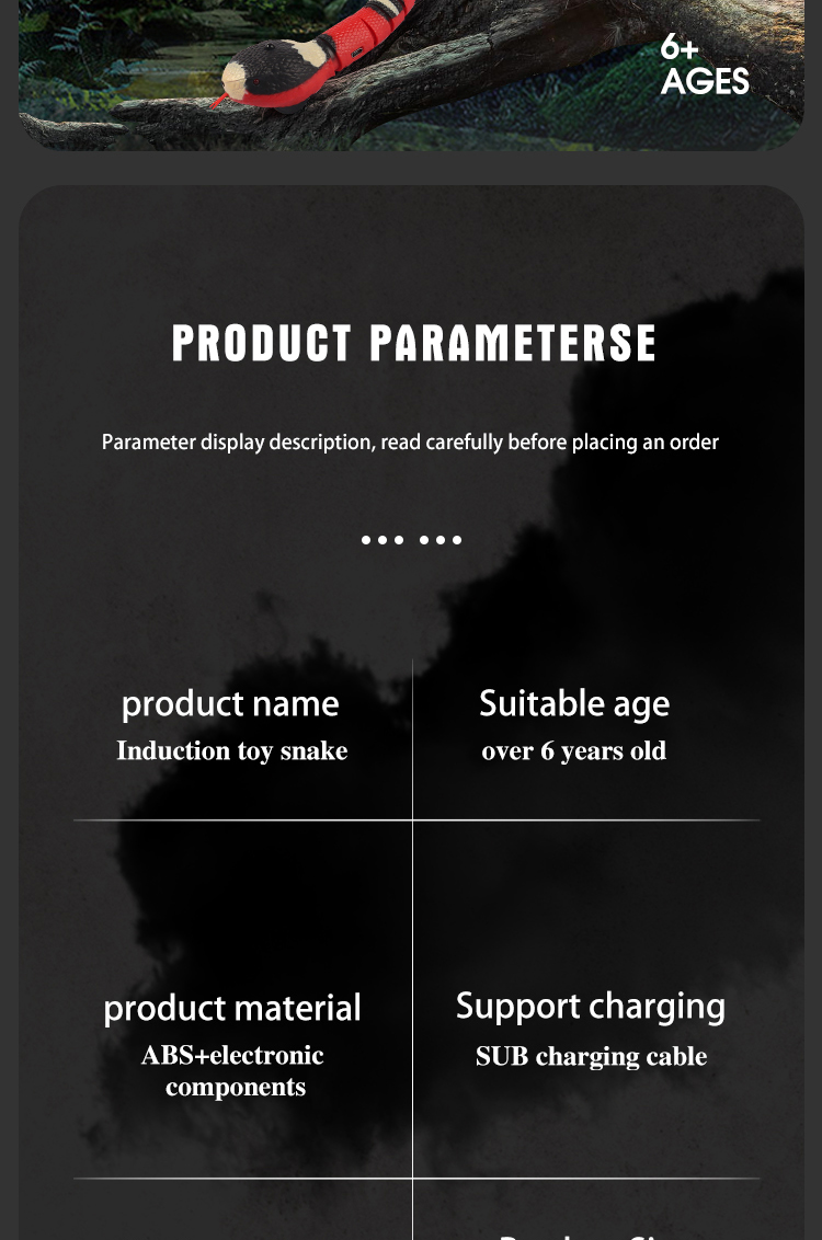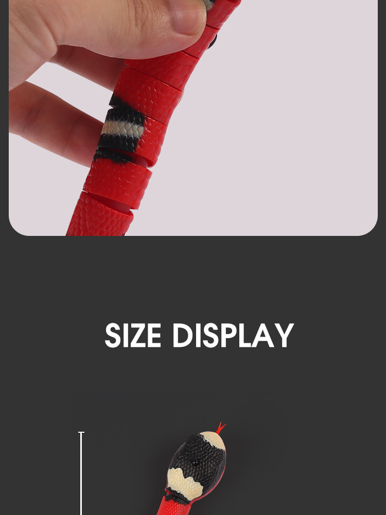 1. Turn on the switch S-type crawling. When encountering obstacles, the eyes will flash and will automatically turn back and turn, the tongue can be stretched, the tail swings, and it will enter the dormant state after playing continuously for about 1 minute. Tap the snakehead to enter the playing state
